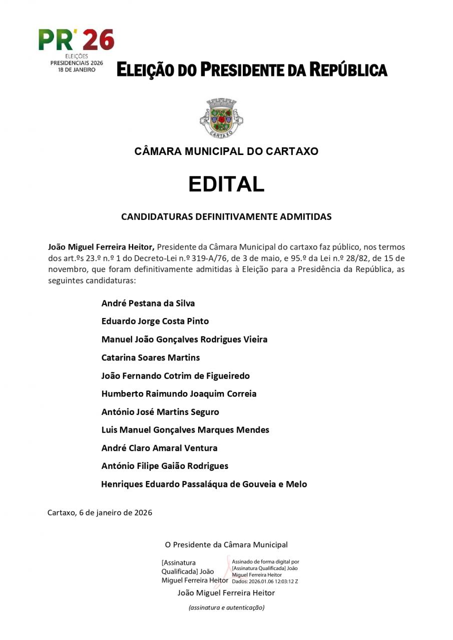 Eleição do Presidente da República - 18 Janeiro 2026 - Candidaturas Admitidas